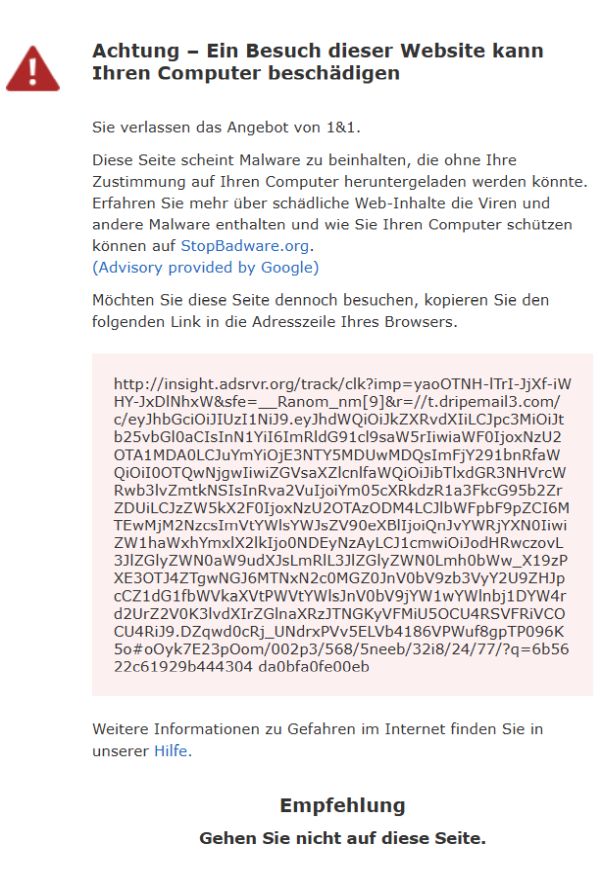 Für die Betrugs-Webseite wird bereits eine hohe Warnung ausgegeben.